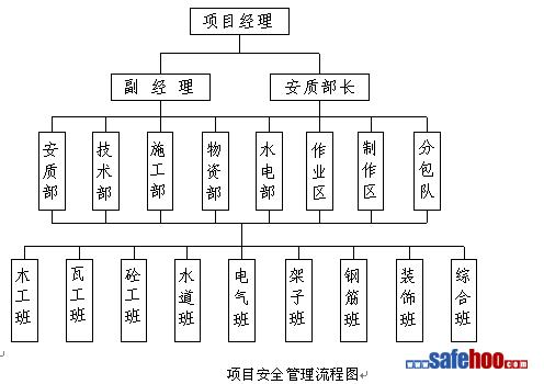 成立以項目經理為首,由施工員、安全員、技術員、班組長等參加的安全生產管理小組,檢查監督施工現場及班組安全制度的貫徹執行,做好安全日檢記錄,并對違反安全規定的人員進行處罰。以公司安全生產副經理及質安部成員組成公司安全管理領導小組,負責安全施工保證體系的管理,檢查組織對安全隱患的突擊檢查。