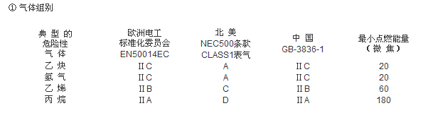氣體分組和點燃溫度,在一定環境溫度和壓力下與可燃性氣體和空氣的混合濃度有關。
