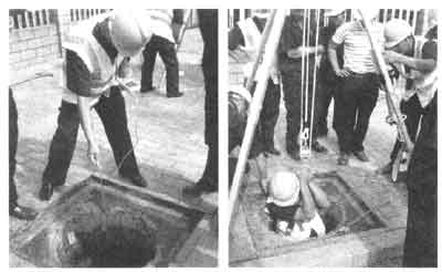 ???4) 密閉場地外的現(xiàn)場要配備合適的起重設(shè)備,例如設(shè)有吊重裝置的三腳架,配合救生繩及安全帶作救援之用;