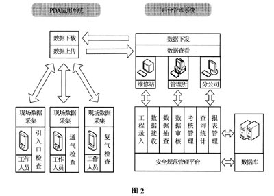 ??? PDA安全操作控制平臺是利用先進的科學工具——PDA掌上電腦搭建的計算機網絡平臺,用統一標準、統一管理,只有“規定動作、沒有自選動作”來掌控生產作業人員安全操作過程,其系統功能主要實現通復氣基本信息管理、工作人員管理、現場數據采集、數據整合分析4個部分。在基礎信息的基礎上,增加了工程現場的過程控制,通過手持設備(PDA智能手機等設備)采集現場數據,掌控施工現場的執行情況,并可以通過對操作人員的工作情況的管理。對現場人員的工作狀況和工作質量進行全面的監督與考評;上級單位可對采集上來的數據進行全面的分析與管理,根據對施工基本信息的記錄和管理,生成各種報表,全面了解施工人員的工作情況,以便做出科學的判斷和正確的決策;使通復氣施工作業的各個階段的安全工作得到有效的控制,從而確保每個燃氣用戶的安全供氣。