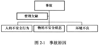 根據事故原因理論,事故系統要素有:人的不安全行為;物的不安全狀態;環境不良及管理欠缺,如圖2-1所示。
