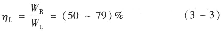 總的液化效率η為30%~45%。