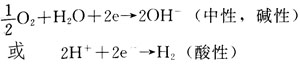 3.在陰極區(qū),電子流至陰極區(qū)后,被電解質(zhì)(土壤)中能吸收電子的物質(zhì)(離子或分子)所接受。其電化學(xué)反應(yīng)式如下: