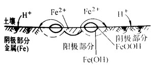 2.土壤中的氧 土壤中的氧存在于土壤的毛細(xì)管和縫隙內(nèi),少量溶于地下水中。土壤的含氧量與土壤的濕度和結(jié)構(gòu)都有密切關(guān)系。干燥的砂土中含氧多,潮濕的砂土中含氧少,潮濕密實(shí)的粘土中含氧更少。土壤濕度和結(jié)構(gòu)不同,其含氧量可相差幾萬倍,這些都會(huì)形成氧濃差電池腐蝕。
