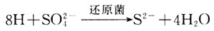 細菌參加的陰極反應為原子氫和硫酸鹽作用,即: