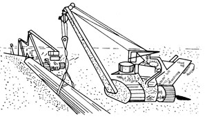 管道下溝的方法,可根據管子直徑及種類、溝槽情況、施工場地周圍環境與施工機具等情況而定。一般來說,應采用汽車式或履帶式起重機下管,當溝旁道路狹窄,周圍樹木、電線桿較多,管徑較小時,只得用人工下管。