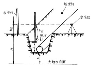 根據h前讀數,釘出第一個坡度樁。一般坡度樁的間距為10~20m。釘好的坡度樁要經過復測,合格后再與施工人員交清下反數,再繼續開挖。城鎮燃氣管道常埋設在道路或人行道下,水準點不易獲取,故常用道路的標高來確定管道的埋深。