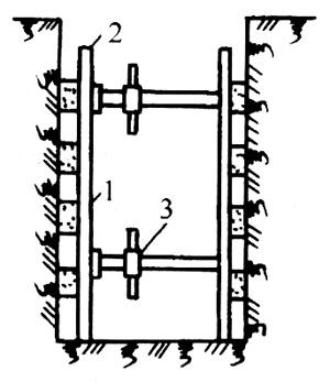 1—擋土板 2—豎枋木 3—工具式橫撐