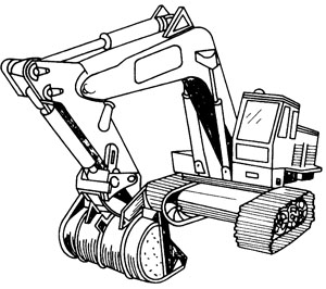 1.液壓單斗挖掘機 液壓單斗挖掘機是目前開挖溝槽土方的常用機械,具有挖土量大,操作方便、靈活等特點。對該機械稍加改裝,即可用于破路面、拔板樁、壓板樁、搬運工具材料等。