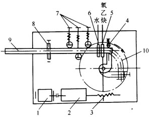 (1)火焰彎管機 見圖5—11。其主要組成有動力和變速部分,彎曲力臂,火焰加熱和水冷裝置以及管子固定調節裝置等。