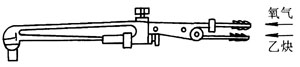 3.射吸式割炬 常稱為氣割,見圖5-2,是利用氧氣與乙炔的混合氣體對管壁或鋼板的切割處加熱,燒至鋼材呈黃紅色(約1100~1150℃),然后噴射高壓氧氣,使高溫的鐵在純氧中燃燒生成四氧化三鐵熔渣,熔渣松脆易被高壓氧氣吹開,使管子切割。根據管壁厚度不同,選用不同規格的割炬:1號割炬的割嘴孔徑為0.6~1.0mm,切割鋼材厚度1~30mm;2號割炬切割鋼材厚度為10~100mm。管徑較大的鋼管常用氣割切割與開坡口,用手工氣割時,應在氣割前在切口處劃線,并用沖子在劃線上打上若干點,以便在切割時能按線切斷。割炬切割或開坡口后的管口,應用砂輪磨口機或銼刀打磨平整,除去鐵渣,以利焊接。