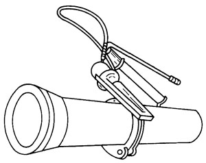 6.液壓割管機操作方便,使用安全、工效高、切割效果好,是較好的鑄鐵管切斷工具。液壓割管機上有液壓缸、手動泵、裝上刀具及刀框后即可工作,以手動泵為動力,進行擠壓,達到切斷的目的。圖5-3為正在使用時的液壓割管機,使用時刀框必須與管軸心線垂直,割斷后應檢查鑄鐵管有無裂縫。