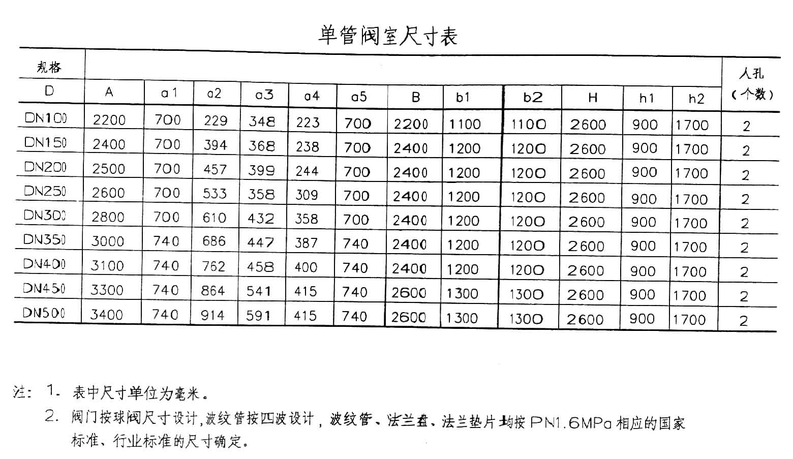 單管閥室尺寸表