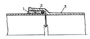 (3)精鉛接口漏氣精鉛接口漏氣的修理應按照精鉛接頭的操作順序,用敲鉛鑿依次敲擊(包括整個接口圓周)使接口精鉛密實,如果僅僅敲擊泄漏點,會發生重復漏氣。敲擊后如果接口精鉛凹癟5毫米以上應用尖鑿在接口精鉛上鑿若干只小孔,然后補澆熱熔精鉛。熔化精鉛溫度應大于700℃,凝固后用敲鉛鑿敲擊直到平整為止(參見圖2—7—5)。