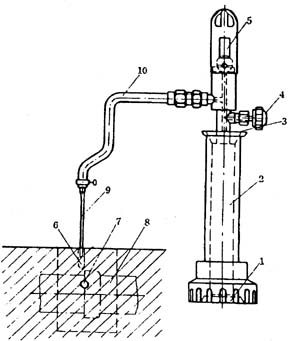 鹵素檢驗燈是利用乙醇蒸氣與鹵素類氣體接觸使檢驗燈火焰顏色變化的原理來判別漏氣點和漏氣量(見圖2—7—1)。