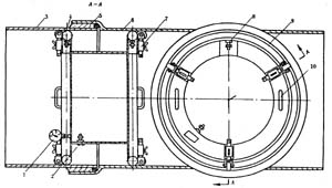 管內(nèi)操作時(shí)設(shè)監(jiān)視人員,用通訊設(shè)備保持聯(lián)絡(luò)。由于在管內(nèi)行走困難,材料、工具運(yùn)輸和操作人員行動(dòng)均可由牽引小車解決。操作人員應(yīng)及時(shí)進(jìn)行調(diào)換。