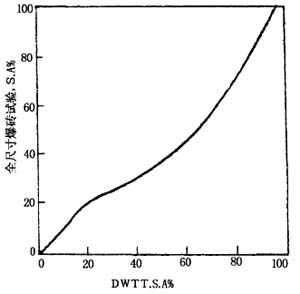 上述的DWTT的S.A%與全尺寸爆破試驗所得的S.A%尚有一些差別,為準(zhǔn)確起見,可以按圖2-5-8進行修正。