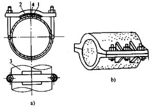 夾子套筒由兩個半圓形管件組成,其長度應比裂縫長50cm以上。將它套在管子裂縫處,在夾子套筒與管外壁之間安放填料,如鉛片或纖維材料制的墊片,用螺栓連接,擰緊即可。
