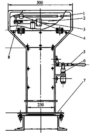機(jī)械灌裝秤主要由秤桿(杠桿)、副桿、游鉈、外殼、秤架、承重板、秤座等組成。氣動(dòng)灌裝秤的結(jié)構(gòu)與機(jī)械灌裝秤基本相同,主要是加裝了一個(gè)氣動(dòng)薄膜調(diào)節(jié)閥,利用壓縮空氣來(lái)控制液化石油氣的灌裝量。機(jī)械灌裝秤的結(jié)構(gòu)如圖1-11-19所示。