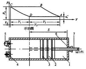 ??? 當活塞向右移動時,氣缸內的氣體體積增大,壓力下降,降到稍小于進氣管內的壓力時膨脹過程結束。圖中C-D曲線就是膨脹過程線。