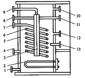 由圖1-11-15看出,該汽化器除了在熱水箱的下部增設了幾組電熱管外,中上部還多了個中心管氣液分離室,起著集聚氣體和分離液體的作用,從而保證了外輸氣體的穩定。