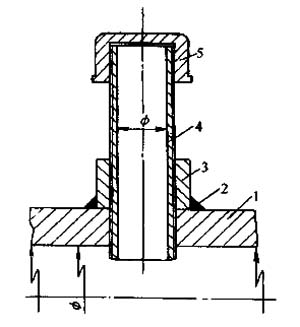 1-鋼管;2-環焊接;3-外接頭(Q235A鋼);4-短管;5-管蓋