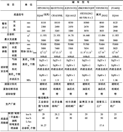 固定式汽車罐車的主要技術規格見表1-8-1。