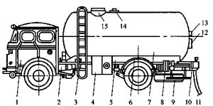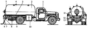 固定式汽車罐車的結構組成如圖1-8-1和1-8-2所示。