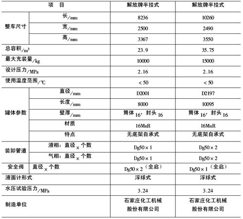 半拖掛式汽車罐車的主要規格及技術性能見表1-8-2。