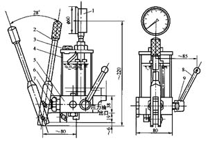 油壓操縱式是靠安裝在閥門箱內的小型手搖油泵所給出的油壓來平衡閥內彈簧的作用力,驅動閥瓣移動而使閥門開、閉的。裝置在閥門箱內的手搖油泵(見圖1-8-1)是緊急切斷閥開啟的動力來源,搖動手柄向油路系統注油,達到一定壓力后,緊急切斷閥開啟,罐車的裝卸作業開始。油壓式緊急切斷閥應保證在工作壓力下全開。裝卸作業結束,轉動泄壓閥或泄壓手柄使油路泄壓,緊急切斷閥恢復關閉狀態。油壓式緊急切斷閥具有結構比較牢固、緊湊,操作方便,動作穩定可靠,使用壽命長等特點,但不如機械牽引式動作迅速。油泵和油壓系統加工制造復雜,修理較困難。