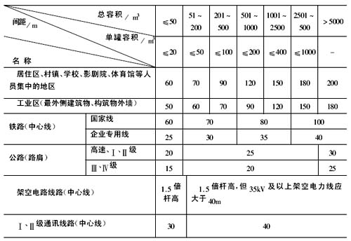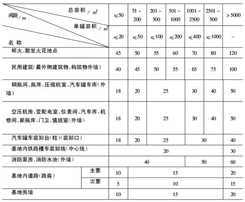 注:1.防火間距應按本表總容積和單罐容積較大者確定。