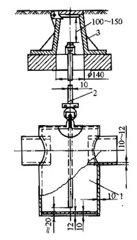 中壓和高壓管道上的排水器,如圖2-28所示,一般采用自動連續排水。排水管設在套管中,排水管的上部有一直徑為2mm的小孔,這就使燃氣管道和排水管之間的壓力得以平衡。因此,凝結水不能沿排水管上升,避免剩余水在管內凍結。