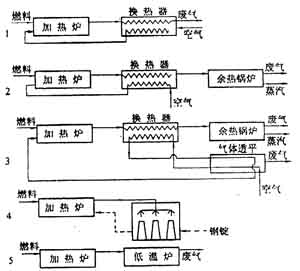 目前余熱利用主要有兩個途徑:用來預熱燃燒用空氣、燃氣或預熱物料;用來生產蒸汽或熱水。