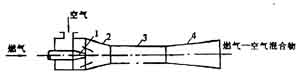 按照部分預(yù)混燃燒原理(0<a′<1)設(shè)計的燃?xì)馊紵鞣Q為大氣式燃燒器。