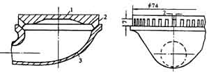 圓火孔,通常用鉆頭直接鉆出,加工方便,應(yīng)用廣泛。圖3—6—16(a)為無凸緣的圓火孔,圖3—6—16(b)為有凸緣的圓火孔。有凸緣的火孔對于二次空氣供給及火孔冷卻均比無凸緣的好。但它較難制造。圓火孔與空氣的接觸面比方火孔小,故影響二次空氣的供給。