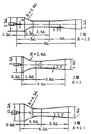 選取1型引射器,如圖3—6—2l,其能量損失系數(shù)K=1.5。