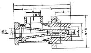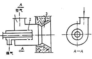 圓套管式燃燒器,如圖3—6—6。它適用各種低壓燃氣,燃燒穩定;但燃氣與空氣混合緩慢,火焰較長,需要較大的燃燒空間。