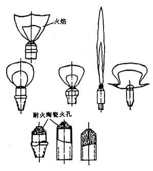 這種燃燒器的火孔一般用陶瓷制成,呈扇狀擴散縫。其火焰極薄,形似魚尾,如圖3—6—3所示,由于增加了火焰與空氣的接觸面積,使燃燒完全而穩定。