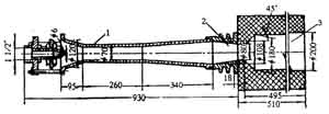 圖3—6—23為引射式單火道無焰燃燒器,它由引射器、噴頭及火道組成。高(中)壓燃氣從噴嘴流出,依靠燃氣的能量吸入燃燒所需的全部空氣,并在引射器內(nèi)進行混合。混合均勻的燃氣一空氣混合物,經(jīng)噴頭進入火道,在熾熱的火道壁面和高溫回流煙氣的穩(wěn)焰作用下進行燃燒。完全預混燃燒的空氣過剩系數(shù)。為1.05~1.10。噴頭是保證燃燒工作穩(wěn)定、防止回火的重要部件。噴頭常做成漸縮形,收縮角為25°左右,且內(nèi)壁加工光滑,從而使噴口混合氣體的速度場達到均勻分布。為了降低噴口處可燃混合物的火焰?zhèn)鞑ニ俣龋乐够鼗穑瑹嶝摵纱蟮膰婎^常采用空氣或水冷卻(圖3—6—24)。在火道式完全預混燃燒器中,可燃混合物的加熱、著火和燃燒均在火道內(nèi)進行。混合物進入火道時,由于突然擴大,在火道入口處形成了高溫煙氣回流區(qū)(圖3—6—25)。回流煙氣不僅將混合物加熱,同時也是一個穩(wěn)定的點火源。火道由耐火材料做成,它近似于一個絕熱的燃燒室,使進入火道的燃氣一空氣混合物立刻進行燃燒,從而保證了較高的燃燒熱強度和燃燒溫度。因而,火道是使燃燒穩(wěn)定,防止脫火的重要部件。這種燃燒器用于高(中)壓燃氣的燃燒上。