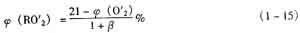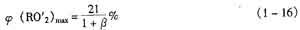 如果完全燃燒時(shí)煙氣中無過剩氧量,即ψ(0'2)=0,則此的相當(dāng)α=1的完全燃燒情況,因而α(R0'2)達(dá)到一個(gè)最大值,式(1—15)可寫成