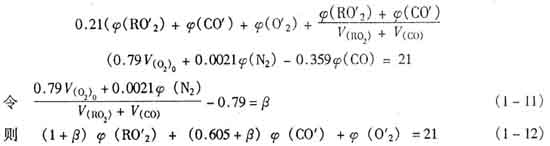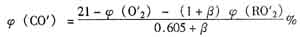 發(fā)生不完全燃燒時(shí)的煙氣成分有關(guān)。但對(duì)于完全燃燒情況,β公式第一項(xiàng)分母僅有V(R02);對(duì)于不完全燃燒,也因V(CO)、V(H2)及V(CH4)一般很小,可忽略不計(jì)。因此,β的表達(dá)式也可統(tǒng)一為: