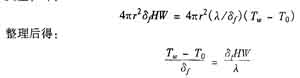 如圖3—1—4,熱球半徑r、溫度TW、以ω速度射入可燃混合氣,在熱球周圍形成厚度為δf的附面層,可燃混合氣熱值H、溫度T0、粘度μ、熱導率λ等。