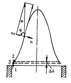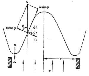 藍色錐體的高度,也與火焰?zhèn)鞑ニ俣群涂扇蓟旌蠚饬魉俣扔嘘P(guān)。如圖3—5—6,設錐體高度為h,噴管出口半徑為r,在錐休表面取一微元面,它在高度上的投影為dh,在徑向上的投影為dr。