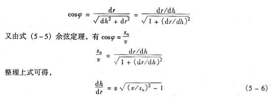 這就是藍色錐體形狀的微分方程式。為了求錐體高度h,可將該微分方程式積分。但由于沿r方向,v和sn都是變化的,要求積分很困難。簡單的處理方法是,假設錐體為正錐體;錐體底面半徑與噴管出口半徑相等;sn為常數(shù),不隨r變化。這時cosψ也為常數(shù),即