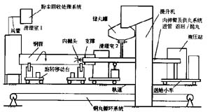 (5)鋼丸循環(huán)系境 主要包括提升機(jī)、分離器,、貯料斗、下料閥、底部輸送皮帶等;