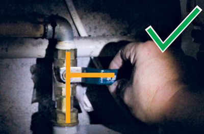 2、關(guān)閉進(jìn)戶(hù)總閥,即表前閥(閥體與閥桿垂直為關(guān)閉狀態(tài))