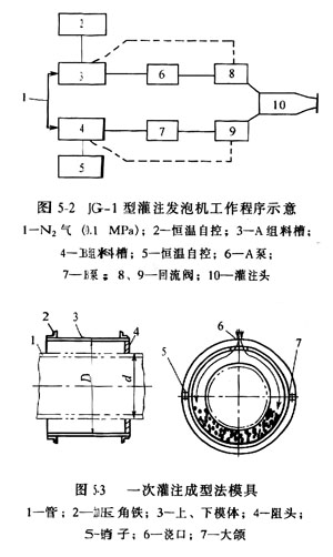 灌注發泡是用灌注發泡機進行的常用JG-1型灌注發泡機系低壓循環型。JG—1型灌注發泡機規格與能力見表5—11。