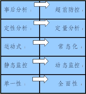 1、變事后分析為超前預防。傳統的安全管理是以事后處理為核心的被動式安全管理和以傳統經驗為依據的事前預防管理。“三位一體”的安全風險預警體系強調以企業生產系統整體為對象,以人為核心,采用系統安全分析手段和現代控制方法,分析生產系統存在的各種危險因素,做好系統控制,使危險因素始終保持在可接受的安全狀態,強調超前管理與重點控制。
