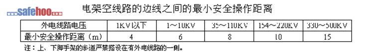 1.在建工程不得在高、低壓線路下方施工,高低壓線路下方,不得搭設作業棚、建造生洛設施,或堆放構件、架具、材料及其他雜物等。2.在建工程(含腳手架具)的外側邊緣與外電架空線路的邊線之間必須保持安全操作距離。最小安全操作距離應汪小于表1所列數值。。。。。。
