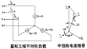 ??? 當(dāng)三相負(fù)載不對稱時(shí),各相電流的大小不一定相等,相位差也不一定為120度 ,電流必定流過中性線,此時(shí)中線在電路中將起到重要作用。